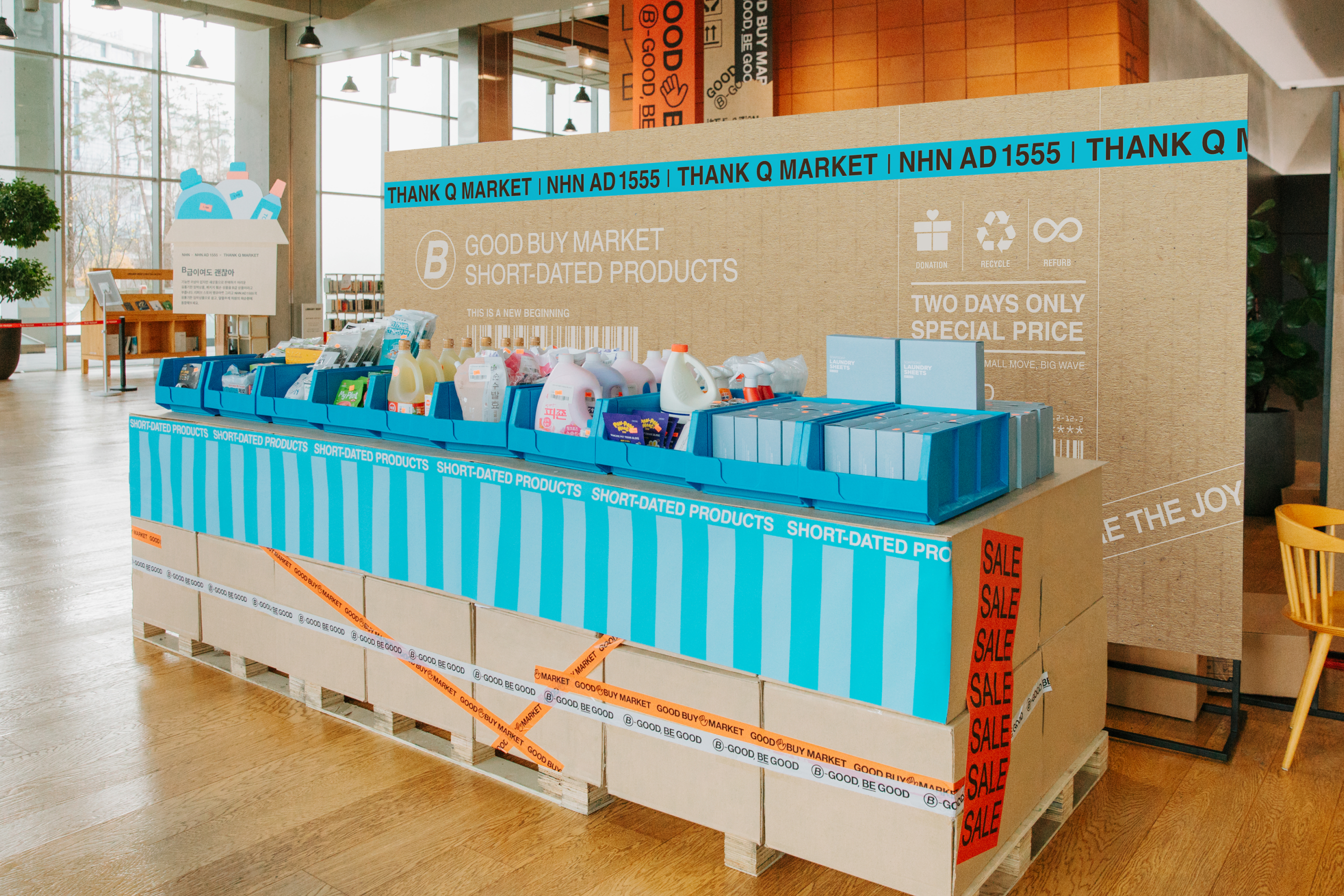 유통기한이 임박했어도 괜찮아! 유통기한이 임박해 일반 판매되기 어려운 상품들을 저렴한 가격에 선보였습니다. 리퍼브 플랫폼 땡큐마켓의 유통기한 임박 상품과 NHN AD ‘1555’의 세탁 시트를 준비했어요. 꼭 필요한 생활용품을 준비한 만큼 반응은 뜨거웠습니다.