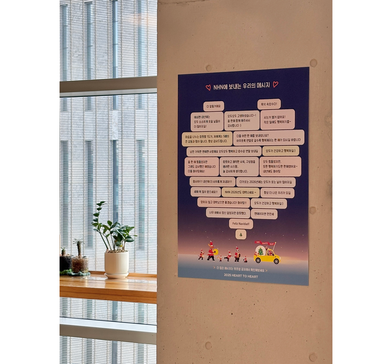 겨울이 되면 우리는 자연스럽게 멈춰 서게 됩니다. 빠르게 지나온 한 해를 돌아보고, 혼자서는 해내기 어려웠던 순간을 떠올립니다. 그 시간 속에는 늘 누군가의 손길과 말 한마디, 조용한 응원이 있었습니다. NHN에게 겨울은 그렇게 마음을 다시 건네는 계절입니다. 우리는 사옥 외관을 장식하며 감사의 인사와 새해의 기쁨을 나누는 것에서 시작해, 함께 일한 동료와 따뜻한 마음을 주고받았습니다.