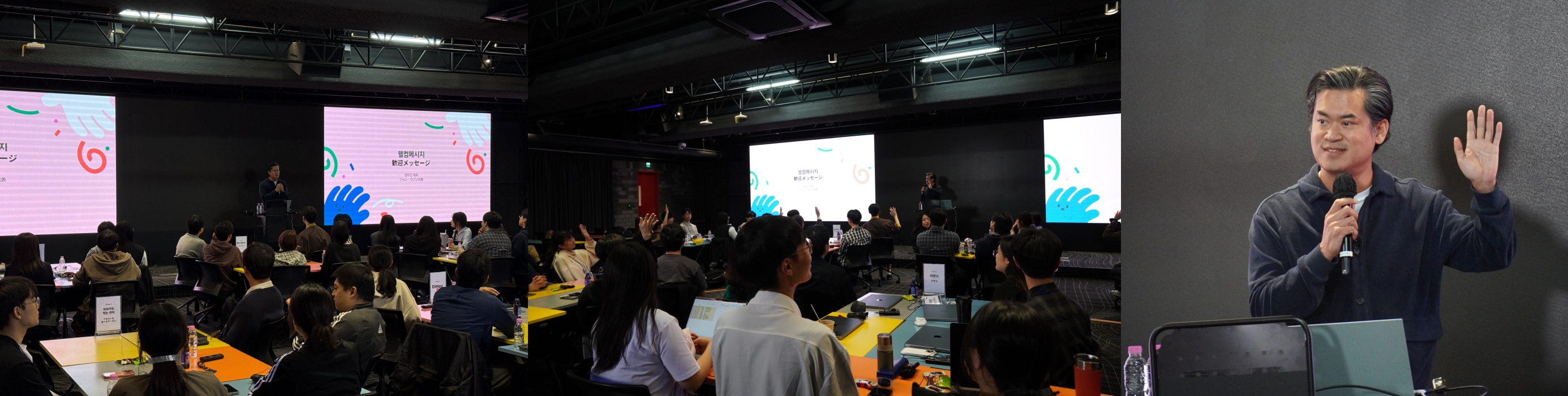 리더 메시지: 경영진이 전하는 글로벌 전략 세션 중 특히 정우진 대표님의 강연이 큰 반향을 일으켰습니다. "격변하는 AI 시대에서 우리는 어떻게 일을 해야 하는가에 대해 생각할 수 있었던 시간"이었다는 후기처럼, 신입사원들은 기술 너머의 비전을 공유받았습니다.