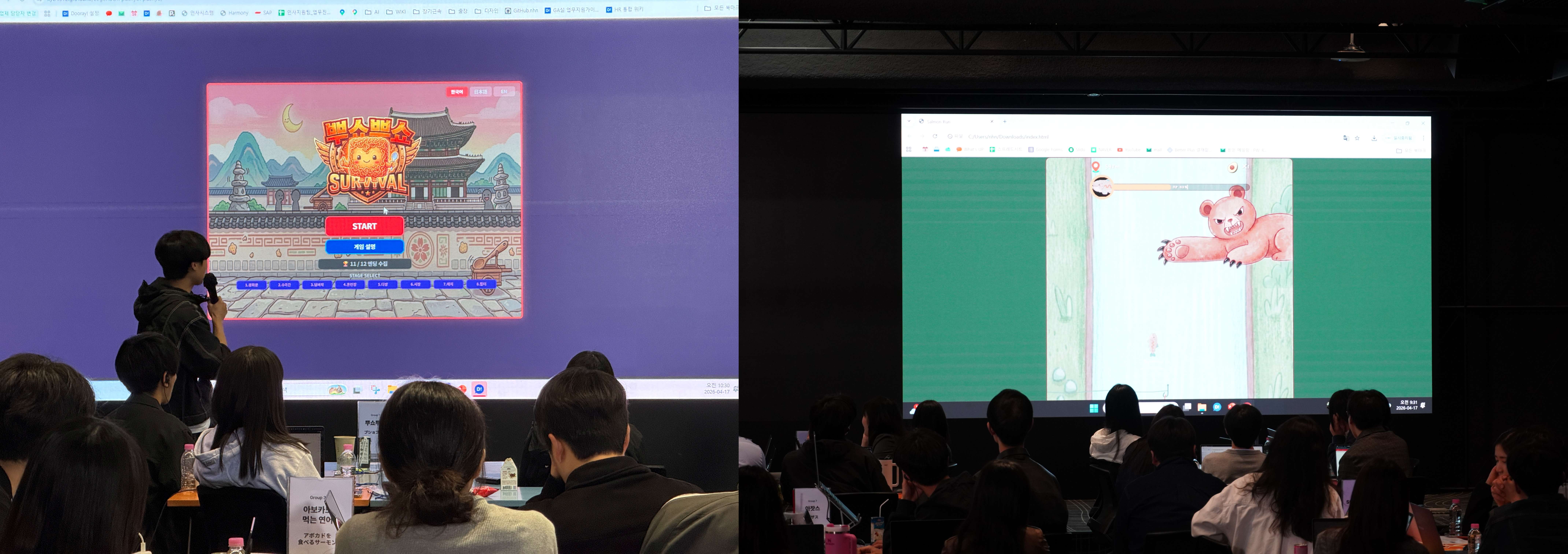 게임 조 양국 사원들은 생성형 AI를 단순한 도구를 넘어 '창의적인 파트너'로 적극 활용했습니다. AI를 통해 복잡한 게임 시나리오를 즉각 시각화하며 스토리보드를 단시간에 구축해냈고, 이를 기반으로 기획부터 실행 가능한 수준의 프로토타입 완성까지 성공적으로 마쳤습니다. 한국적인 배경을 무대로 펼쳐지는 박진감 넘치는 서바이벌 게임은 현장의 몰입감을 더했고, 팀명에서 아이디어를 얻어 탄생한 ‘아보카도 먹는 연어’는 귀여운 일러스트와 독창적인 재미를 동시에 선보여 현장의 호응을 얻었습니다.