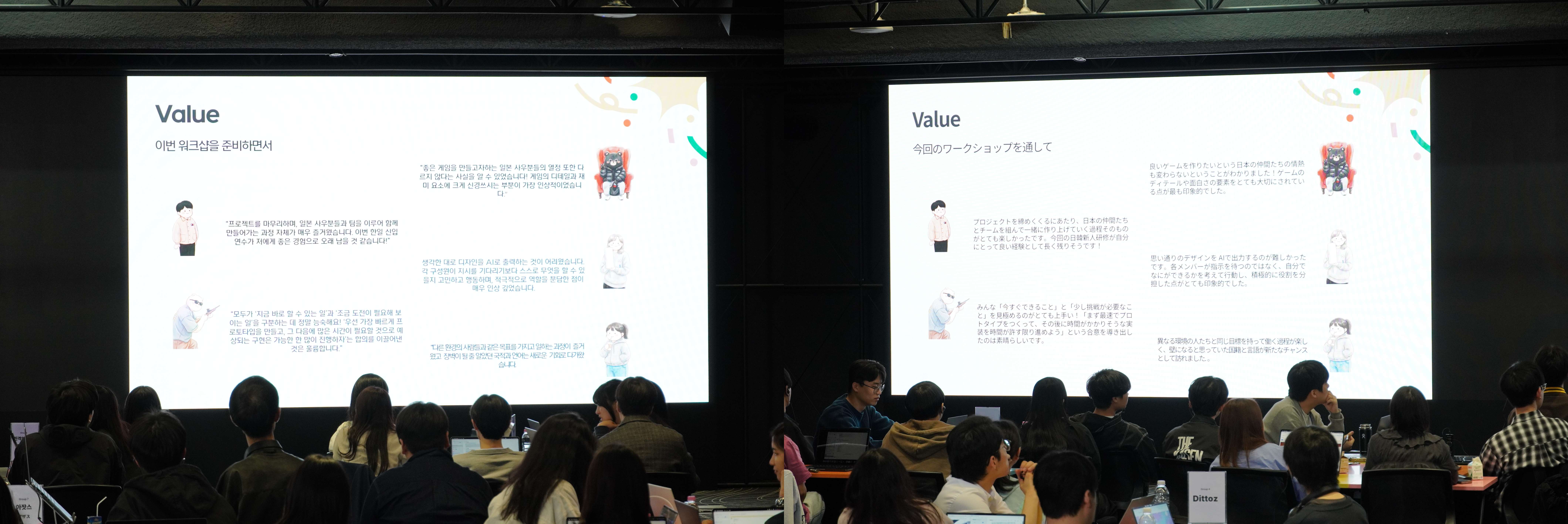 올해의 메인 미션은 ‘AI 도구를 활용한 협업’ 이었습니다. 양국 신입사원들은 조별로 모여 생성형 AI 툴을 실무에 어떻게 녹여낼지 치열하게 고민했습니다.